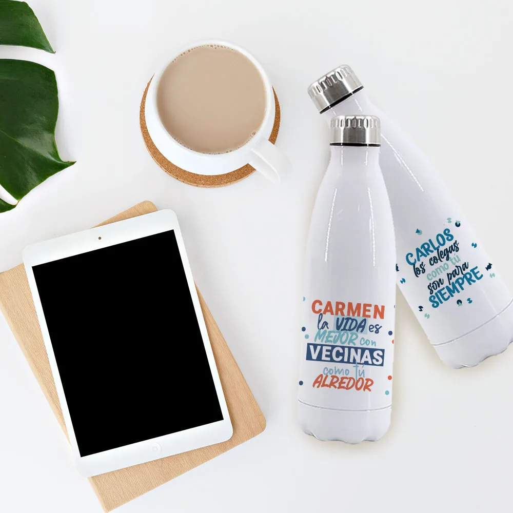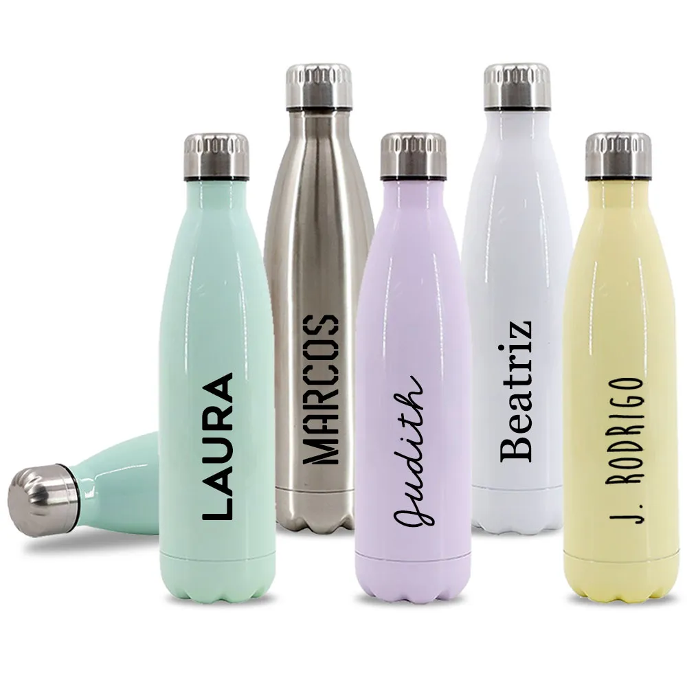 - Borraccia in acciaio inossidabile, perfetta per viaggiare grazie alla sua robustezza e leggerezza.