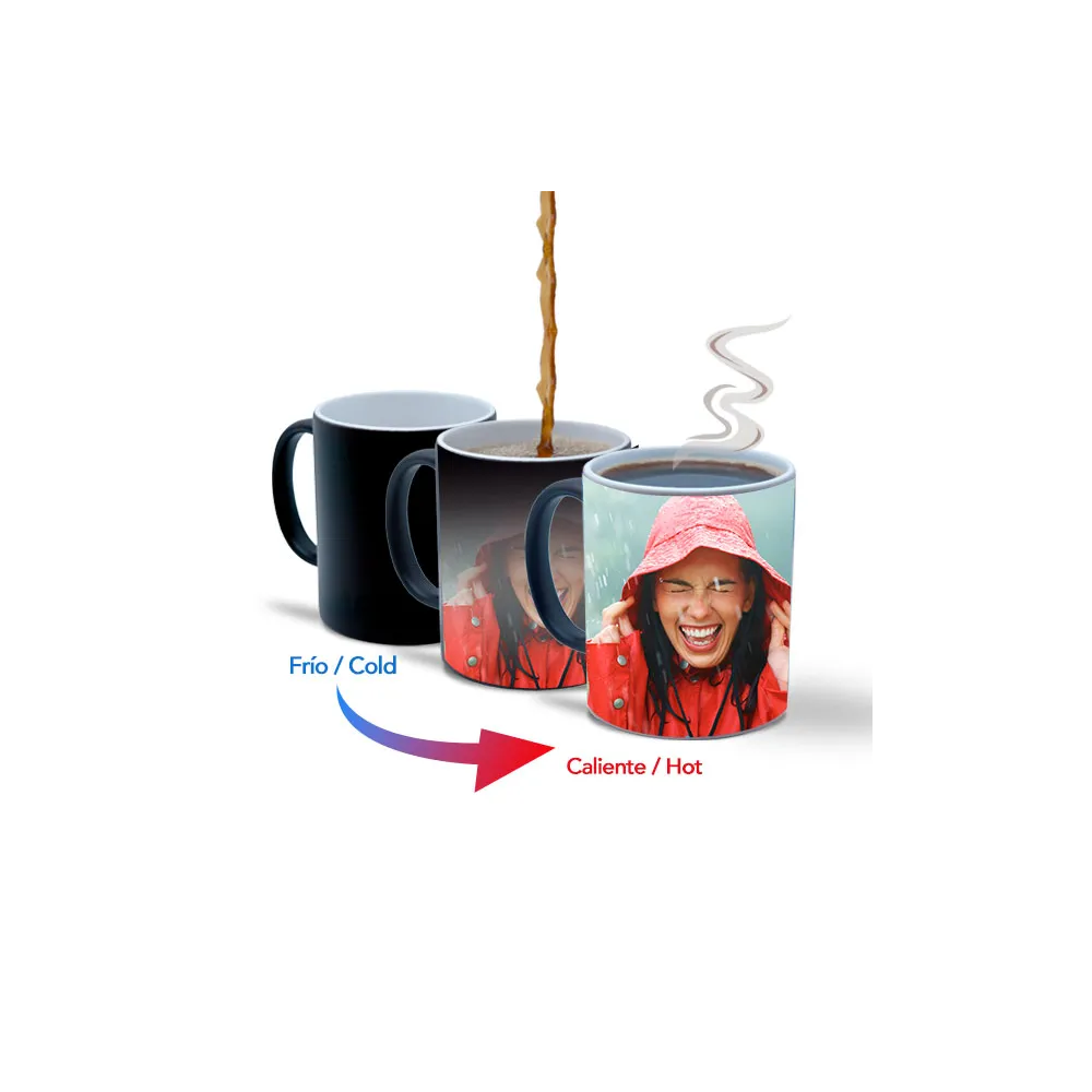 La Tazza Magica personalizzabile rivela la tua grafica, foto o logo solo quando viene versata una bevanda calda.